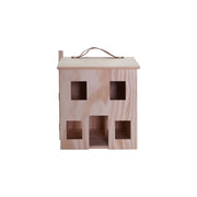 9"L x 8-3/4"W x 10-1/2"H Wood Folding Doll House w/ Faux Leather Handle & Metal Latch