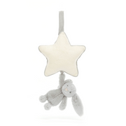 An enchanting newborn gift, let babies dream sweetly with a Bashful Cream Bunny Musical Pull. Our most loved Bashful Bunny, in soft cream fur made from recycled fibers can be gently pulled to hear an original Jellycat lullaby. The cream star shaped musical pull with contrast trim can be attached to a crib or pram with a Velcro fastening.