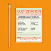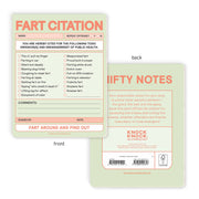 As a responsible citizen it's your duty to police other people's behavior–the good, the bad, and the gassy. Issue this semi-official-ish citation for squeezing the breeze and cutting the cheese, whether offenders are friends, coworkers, loved ones, or total strangers. Do your part to enforce clean-air standards, not to mention good manners!