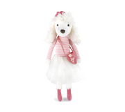 Say “bonjourâ€?to Fifi the French Poodle, the most stylish pup on the plush runway! With her fluffy white curly faux fur, candy-striped top, and twirly tulle skirt, Fifi is ready to strut her stuff from Paris to playtime. She’s accessorized with a pink bow and a darling shimmer crossbody handbag, always prepared for a day of tea parties and tail-wagging adventures. Elegant, cuddly, and full of charm, Fifi is paws-itively magnifique