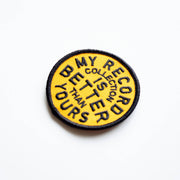 Elevate your style with our bold and witty iron-on embroidered patch! Measuring 2.5 inches in diameter, this round patch proudly declares, "My record collection is better than yours" in striking black letters against a vibrant yellow background. Perfect for jackets, bags, or hats, this patch is a must-have for any music aficionado looking to make a statement. Crafted with meticulous detail, it's an eye-catching accessory that combines humor and pride in your unparalleled taste in music.