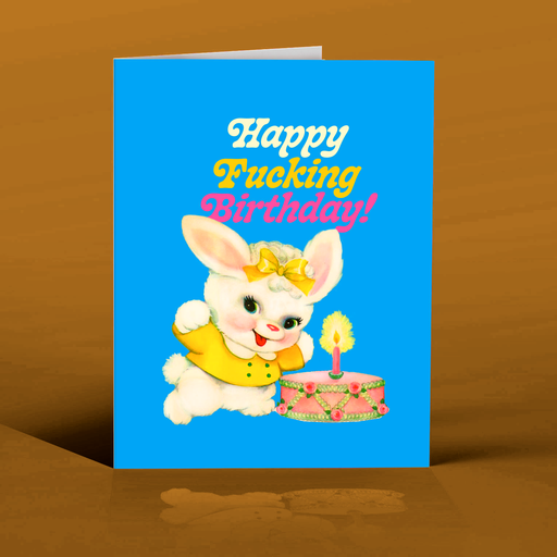 OFFENSIVE + DELIGHTFULLittle bunny says "Happy Fucking Birthday!" with a cake, and a single candle. Style No. NW16 Funny, adorable, subversive and of course, taking you ...