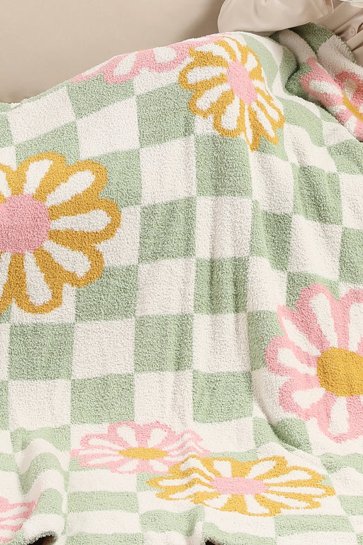 Daisy & Checkered Pattern Luxury Soft Throw Blanket