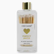 Celebrate the sparks between you and your special someone. Ideal for romantic candlelit dinners, cozy nights in, or setting the mood just right. Because you two are a perfect match. Phrase: Perfect Match Glass Bottle with gold lid 40qty Safety Matches White Tipped Striker on Side of Bottle for easy strike and light 1.84 x 4.75, 1.8oz Glass Bottle