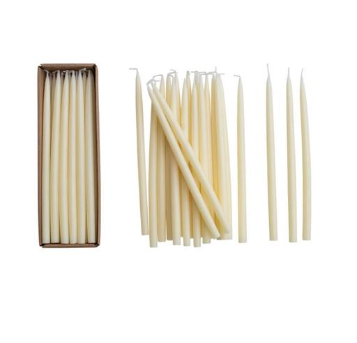 CREATIVE CO-OPApprox. 1/2" Round x 10"H Unscented Thin Taper Candles in Box, Camel Color, Set of 24 (Est. Burn Time 3 Hours) Dimensions: 0.5 x 0.5 Material: Para...