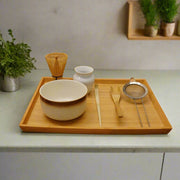Complete Set: Includes a bamboo tea whisk (Chasen), ceramic bowl (Chawan), bamboo spoon (Chashaku), stainless steel strainer, stand, and gift box.