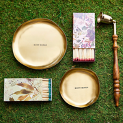A lovely molten-gold finish and an uneven, organic edge makes this candle plate special. Custom made to fit our Round Botanical Candles perfectly.