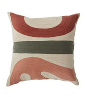 Warm, earthy hues make up the embroidered abstract shapes on a neutral background of the Monterrico Pillow. A hidden back zipper allows for removal of the included pillow insert. This textile is lovely layered with the other Casita pillows.