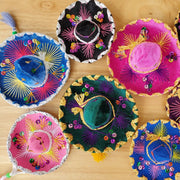 Dog hat - cat hat, Mariachi hat, cute puppy hat, cinco de mayo Mexican decor, Mexican party, party favors, Mexican party decor, fiesta decor This is an authentic Mexican sombrero made of velvet fabric decorated with sparkling threads and colorful sequins, it is hand sewn with high quality products. Its bright color will light up your pet's style. It's perfect for any occasion like Cinco de Mayo, Mexican themed parties, Halloween, or just to dress up for fun pictures. The mini charro hat is handmade in Mexico and comes with a string to keep the hat on for small dogs or cats; but I've added an elastic so it stays in place on any head size! Your pet can also wear it tied up on its bandana or collar, hanging on the back. ♡ Measures about 6.5" in diameter. (If you need a different diameter, let me know in comments) ♡ Hats can differ on color combination of threads or strings.