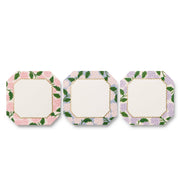 Jot down reminders or leave a sweet note with this set of three floral-bordered notepads, with metallic gold details and 50 tear-off sheets each. DETAILS - Warm white text paper - Printed in full color - Metallic gold foil - Die-cut octagon shape - Set of 3 notepads - 50 tear off sheets per pad - Acid free paper - 4" W x 4" L