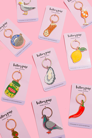 This trendy, pickle jar enamel keychain is the perfect way to add cuteness to your keys or bag!