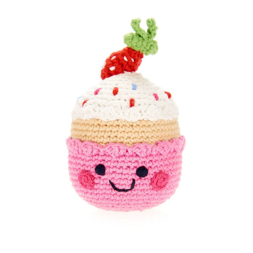 PebbleDetails: Handmade and fair trade 100% cotton with polyester fill Pink wrapper, white icing, red strawberry topper Soft and lightweight for little h...