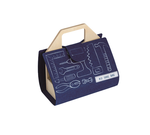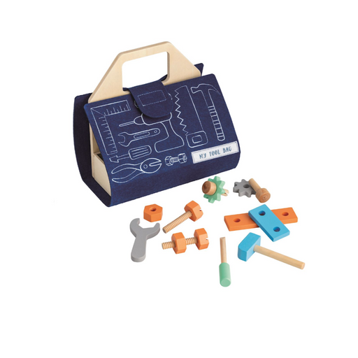 MUD PIE10-piece set. Clever wood and felt Tool Kit set with felt and wood accessories includes hammer, wrench and plate to practice with nuts and bolts fo...