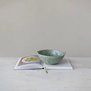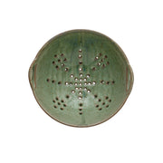 This rustic stoneware berry bowl features integrated handles and a naturally variating reactive glaze.
