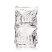 A repeating rainbow motif pressed into lead-free crystal gives these textured tumblers Art Deco decadence. Perfect for a generous Double Old Fashioned or Negroni on the rocks, this stackable barware saves space on your bar cart and adds some Gilded Age style to your glassware collection.