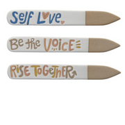Mark your plants with daily reminders that we have the power to rise together, empower each other & speak up for the underrepresented. Made of natural brown bisque clay, the Unity Plant Stick is white glazed with multi-color hand painted words.