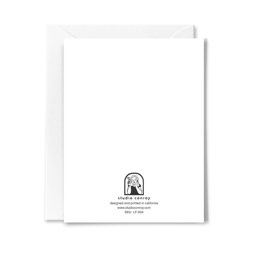 Studio ConroyA2 (4.25 x 5.5") Blank inside so you can write your own special message. Comes with a white envelope and protective cellophane sleeve. We love impe...