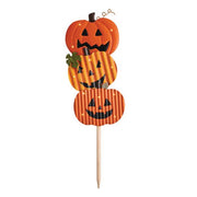 Hand-painted metal yard décor with LED lights on wooden stake. Requires 2 AAA batteries, not included.