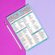 Whether you’re coming or going, the remedy for pretrip chaos and forgotten toiletries is here. An exhaustive checklist of everything you could ever need on a trip, this packing list pad will help even the most forgetful to arrive and depart fully equipped. Now avail in oh-so pretty sky blue—woohoo!