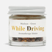 A unique, stress-relieving aromatherapy inhaler for everyday use. Every jar is filled with organic essential oils, inspired by medicinal French aromatherapy, and aromatic spices inspired by traditional Chinese medicine. All oil blends are formulated by a clinical aromatherapist. "While Driving" Stress relief inhaler - Use the inhaler during commutes, road trips, and in evenings to help relieve tiredness and stress that comes with driving. - Reduces stress related to tiredness, irritability, and frustration - Decreases symptoms of motion sickness - Stimulates, soothes, and energizes the mind.ย  โƒ Lasts 3~4 months after opening Directions: Hold the jar 3~4" away from your nose, deeply inhale for 4 seconds, then slowly exhale for 6 seconds. Repeat as necessary. Ingredients: Essential oils (Lemon, Peppermint, Eucalyptus, Camphor), Menthol, aromatic spices ๐‘ฝ๐’†๐’ˆ๐’‚๐’. ๐‘ช๐’“๐’–๐’†๐’๐’•๐’š-๐’‡๐’“๐’†๐’†. ๐‘พ๐’๐’Ž๐’‚๐’-๐’๐’˜๐’๐’†๐’…. ๐‘ด๐’‚๐’…๐’† ๐’Š๐’ ๐’•๐’‰๐’† ๐‘ผ๐‘บ๐‘จ.