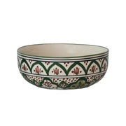 Hand-Painted Stoneware Large Bowl w/ Design | Brown & Green