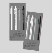 We're *enchanted* to introduce you to the newest Jotter Packs (Taylor's Version)! Soft-touch barrel surface and fine-point gel tip now have a Swiftie flare. *MOST* pens write in colored gel ink that matches the barrel, with the exception of: White, Gray, Silver, Gold, Rose Gold, Navy-- those write in Black.