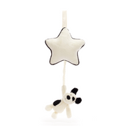 The Bashful Black & Cream Puppy Musical Pull is a soothing gift to help babies drift off. Our most loved black-and-white pup has gorgeous cream fur with licorice-colored patches made with recycled fibers and holds on tight to a concertina pull. Gently pull Puppy and an original Jellycat lullaby will play from the stylishly monochrome trimmed star.