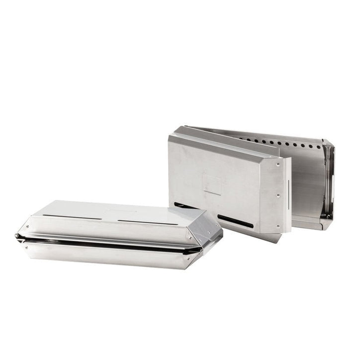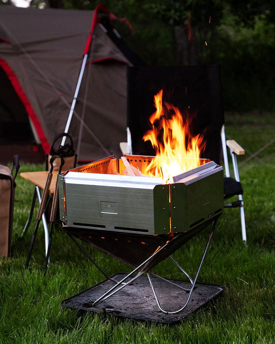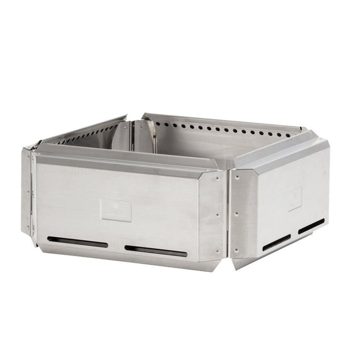 The Floga is a fireplace wall attachment that reduces smoke and campfire smells while generating secondary combustion by pre-heating and altering the airflow. Designed in Japan, the Floga is made of durable stainless steel and features a simple folding assembly. To use, gently place upon the Large Pack & Carry Fireplace when burning wood or coals to reduce the amount of smoke and smoke smells. After use, allow the unit to cool before hosing down, then let it air dry before placing it in its storage case.