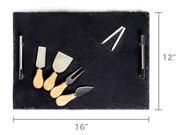 7 pc Serving Tray Set 16"x12" Large - Stainless Steel Handles - Soapstone Chalk - 4 Cheese Knives - Foam Protective Feet by Proper Goods