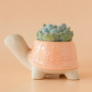 Liven up your living room with this fun and fabulous Sunset Turtle Planter! This adorable, ceramic critter is sure to be a conversation starter and the perfect neutral tan shade will blend seamlessly to any style! Crafted out of ceramic, this unique turtle-shaped planter combines unglazed elements with reactive-glazed accents ideal for a small succulent and cacti arrangement or small house plant! . Small Dimensions | 5"L x 3"W x 2.5"H . Medium Dimensions | 5.5"L x 4"W x 2.75"H . Material | Ceramic . Packed with EPE foam - environmentally friendly and 100% recyclable . Imported