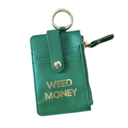 Vice Wallets! Keychain wallets for your favorite little vice. Pu leather, 2.75" x 4.25". Front has text in gold foil and 2 card slots with a snap closure. Zippered middle for cash/coins. 2 card slots on the back.