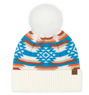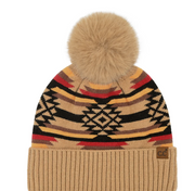 Stay stylish and warm this fall with the Aztec Patterened C.C Pom Beanie HTE0127! Featuring an on-trend aztec pattern and beautiful color waves, this beanie is a must-have for the season. Don't miss out on this essential fall accessory!