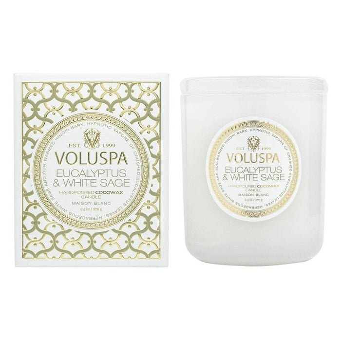 Notes of crushed Eucalyptus leaves, Cardamom, herbaceous White Sage, and sun-warmed Hinoki Bark create a kinship of peace and vitality, illuminating feelings of renewal. Make Voluspa’s Eucalyptus & White Sage part of your daily routine. Namaste.