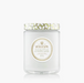 A single wick with 100 hours of burn time, housed in sleek white glass, topped with a decorative Maison lattice embossed tin lid.