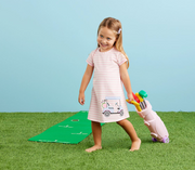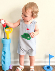 9-piece set. Plastic golf bag holds three clubs, three balls, one hole and flag and one felt putting green. Ages 3+.