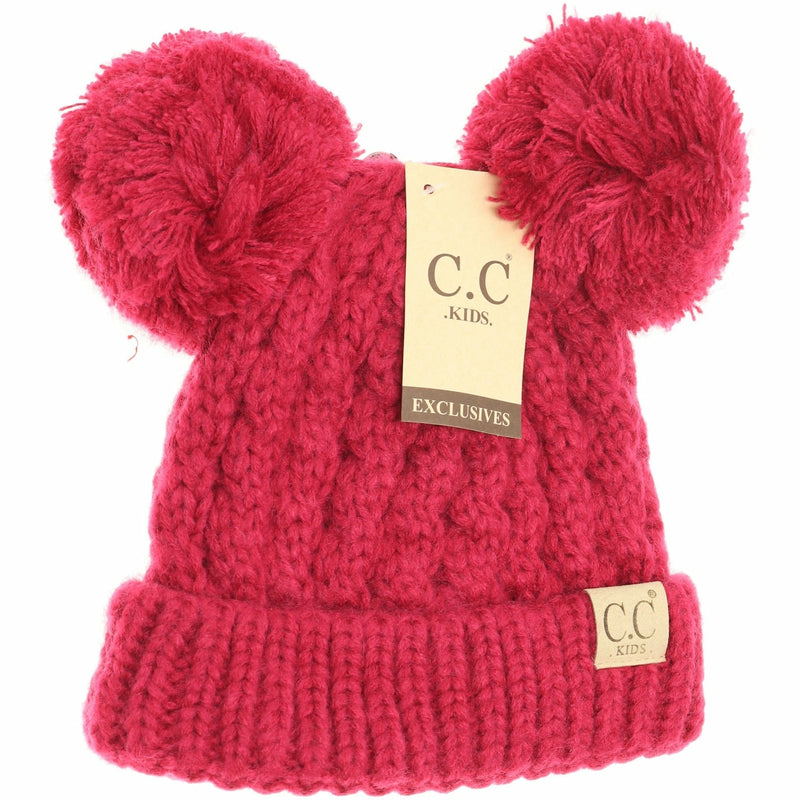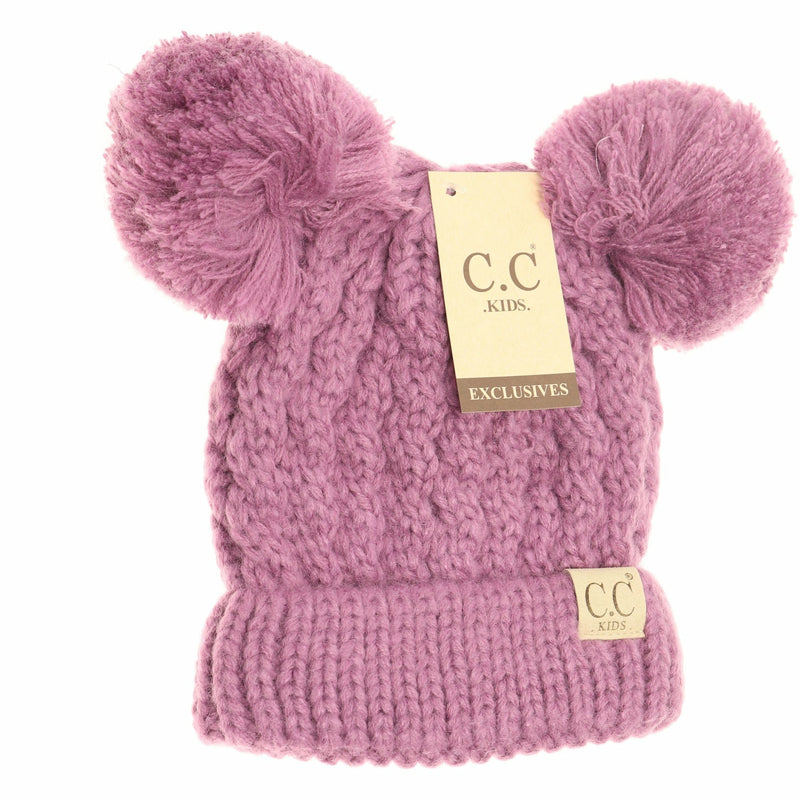 Now a solid color double pom CC Beanie to adorn the cutest member of your family! These adorable beanies feature a solid knit design with a double pom!