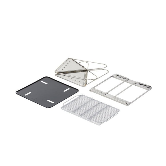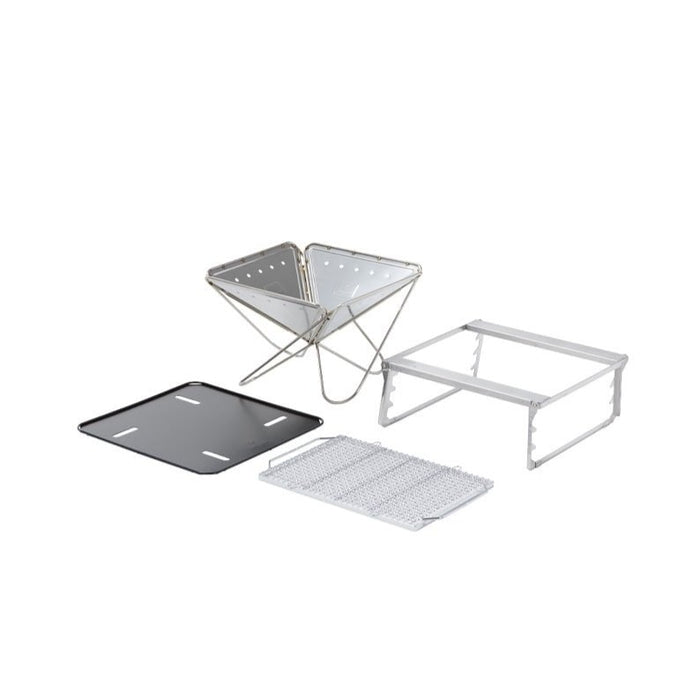 The Takibi Fire and Grill is made of durable stainless steel and designed in Japan for a lifetime of use. Packable, portable and modular, use the Takibi Fire and Grill to create a gathering anywhere. The five-piece set includes Grill Net, Grill Bridge, Pack & Carry Fireplace L, Baseplate, and Carrying Case.